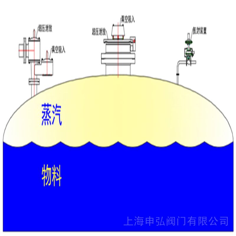 储罐氮封系统装置(氮封阀泄氮阀呼吸阀)是一套自力式微压力控制系统,主要用于保持容器顶部保护气(一般为氮气)的压力恒定,以避免容器内物料与空气直接触,防止物料挥发,被告氧化,以及容器的安全。氮封装置特别适合用于各类大型储罐的气封保护系统。氮封装置产品具有节能,动作灵敏,运行可靠,操作与维修方便等特点,氮封装置广泛应用于石油,化工等行业,产品特点无需外加能源,在无电无气的场合工作。