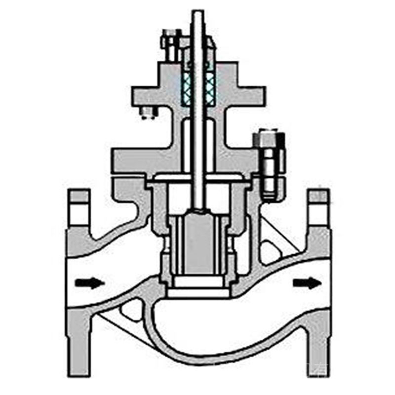 4、直通低流阻单座为无底盖顶导向结构,它只有一个阀座和一个柱塞形阀芯具有密闭性能好、泄漏量小、动作灵敏、流体通道呈S流线型、压降损失小、阀容量大、流量特性精确、可调比大,阀芯导向部分的导向面积大,具有抗振性能强等特点,适用于对介质泄漏量及调节精度有严格要求的场合,但由于阀结构上的原因,阀杆上的不平衡力较大,尤其在公称通径大的工况下更为明显,因而该阀只适合于工作压差较小的场合。