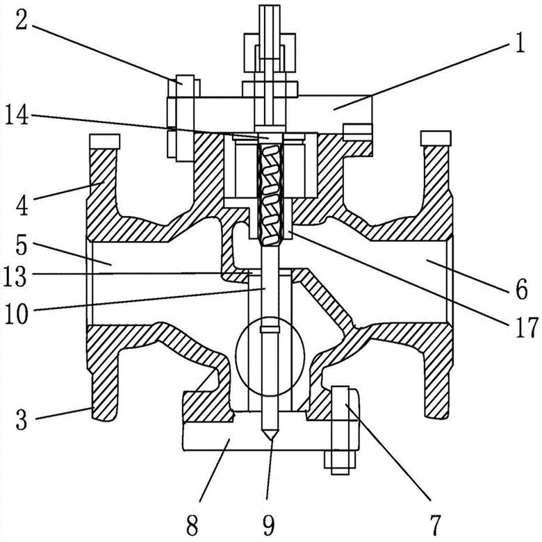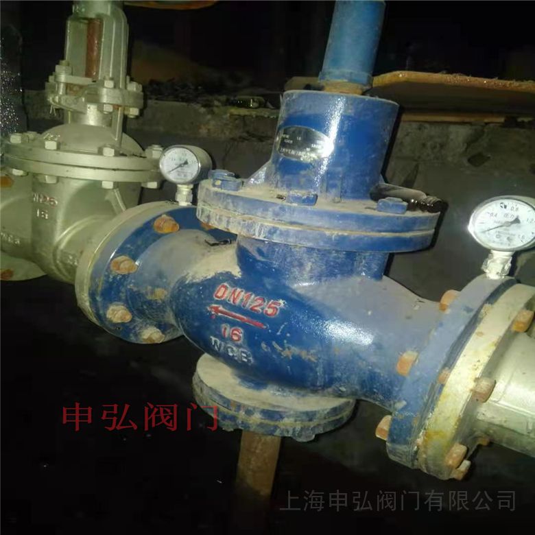 3、通过调节调节弹簧压力设定出口压力、利用膜片传感出口压力变化,通过导阀启闭驱动活塞调节主阀节流部位过流面积的大小,实现减压稳压功能。进口压力不断变化的情况下,保持出口听压力和温度值在一定的范围内