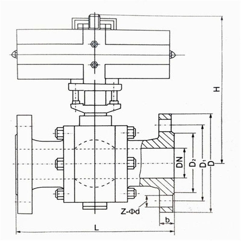 4、金属硬密封气动固定式球阀采用双向金属可动密封结构,具有自动补偿及自洁功能,密封性能优越。