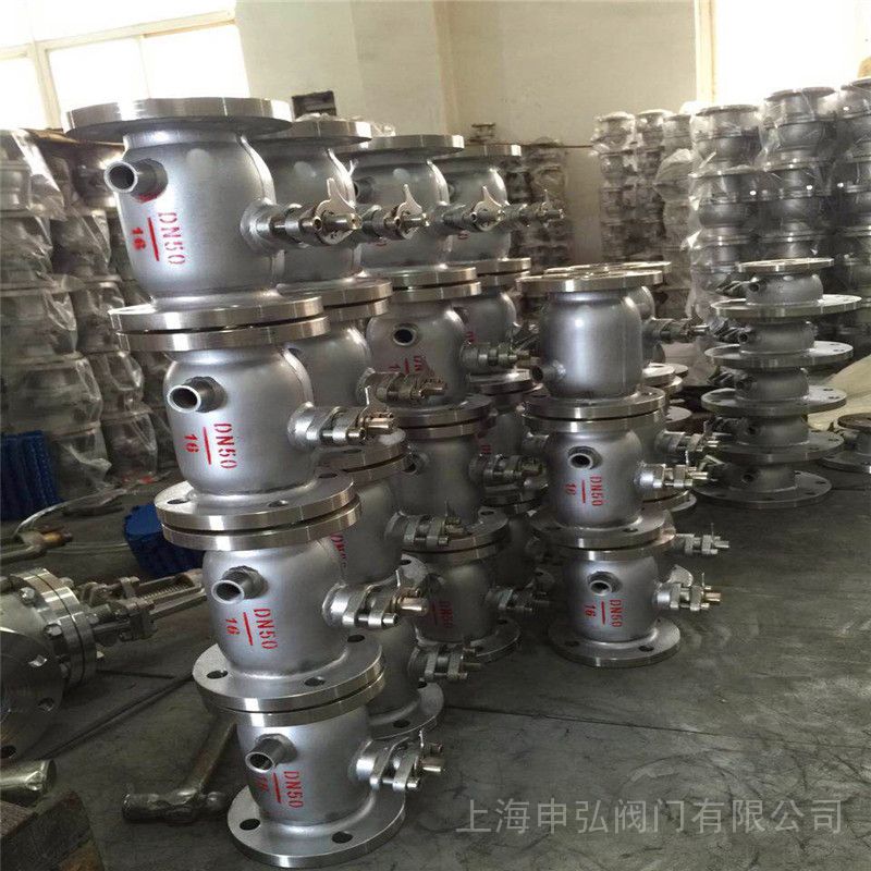 夹套保温球阀具有良好的保温、保冷特性,除缩径保温球阀外,阀门的通径和管径一至,介质呈直线流动,阻力小,能有效降低管路中介质热量的损失,因此,对容易凝固、高粘度的液体介质具有优良的性能。基础上焊装金属夹套,用于注入蒸汽或其它保温、保冷介质,确保阀内介质能够正常工作。具有良好的保温保冷特性,且阀门的通径与管径一致,同时又能有效降低管路中介质热量损失。采用整体式夹套结构设计,更能均匀地保温、保冷,保温球阀比一般球阀体积更小,重量更轻,且无外漏,密封性能良好,夹套采用碳素钢管焊接比铸造的更加耐压牢固。 夹套、阀体外侧与夹套接管焊接,允许蒸汽或冷水的*高压力为1MPa。