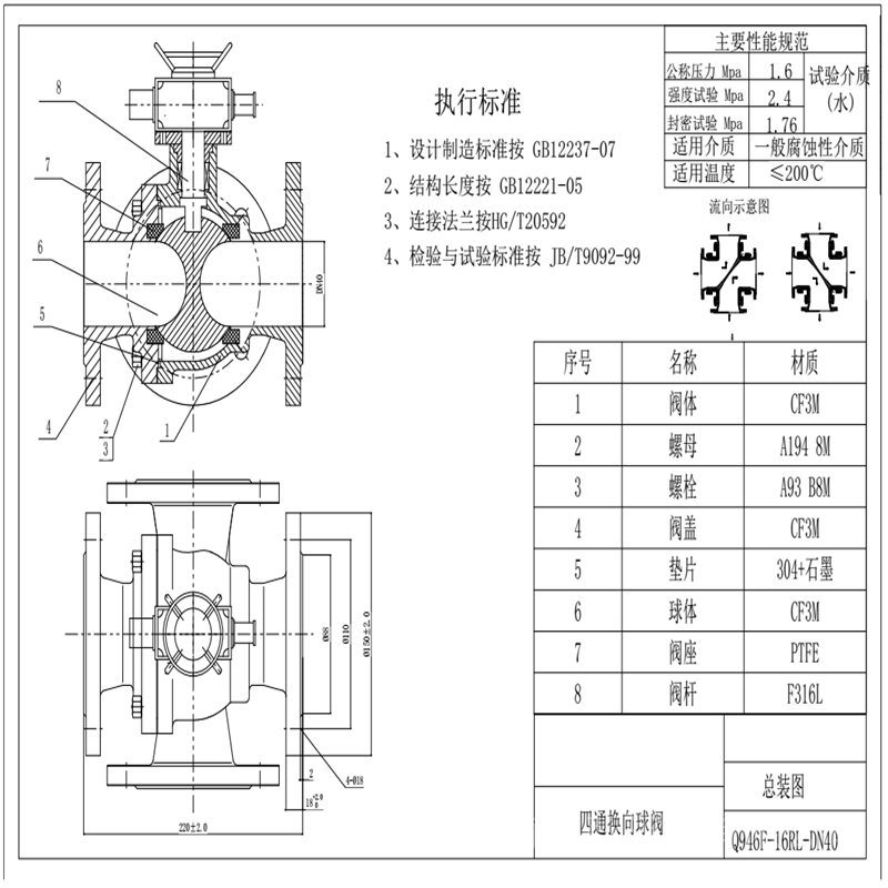 如图所示“LL”型四通球阀只需操作扳手或执行器将球体转动90度,可同时对两种介质的流向进行切换,既方便又迅速,实现一阀多用的效果。具有良好的保温保冷特性,且阀门的通径与管径一致,同时又能有效降低管路中介质热量损失。主要用于石油、化工、冶金、制药、食品等各类系统中,以输送常温下会凝固的高粘度介质。由于采用整体式结构,因而BQ41F球阀比一般球阀更小,重量更轻,且无外漏,密封性能良好,夹套采用碳素钢管焊接比铸造的更加耐压牢固。上海申弘阀门有限公司主营阀门有:减压阀(气体减压阀,可调式减压阀,水减压阀