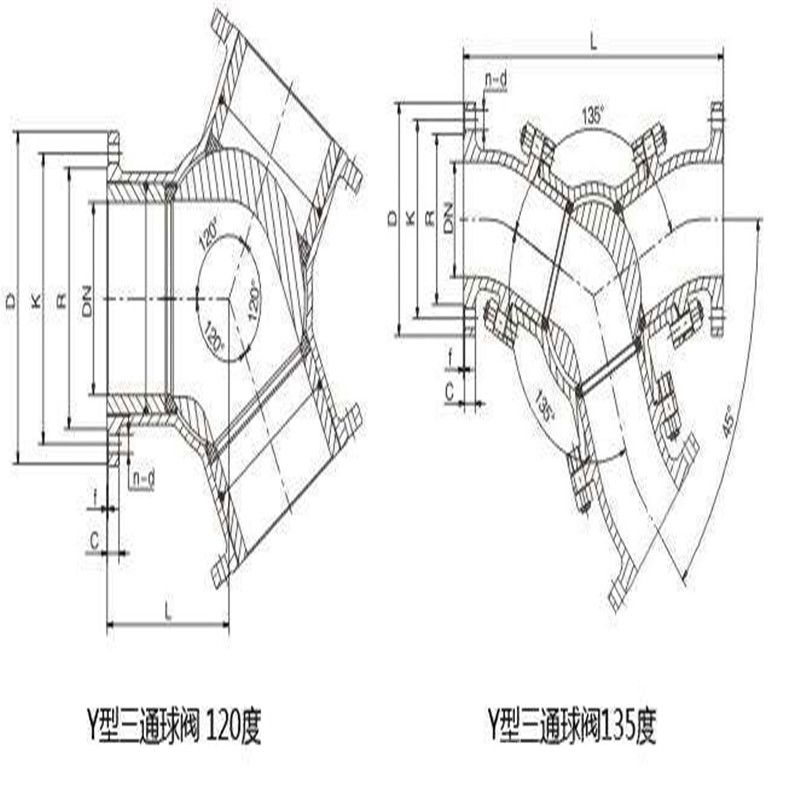 本实用新型涉及ー种球阀,更具体地说,它涉及一种三通球阀。是指流道为Y形结构,Y形角度135 度,135度角Y型三通球阀应用在项目当中具有:流阻小、流量大、流通能力强、外观精美、结构紧凑,安装在管道当中不会使介质留在阀门内部,可以方便的对 流道进行切换,在应用在工况当中135度角Y型三通球阀可以根据客户的要求定制密封面。