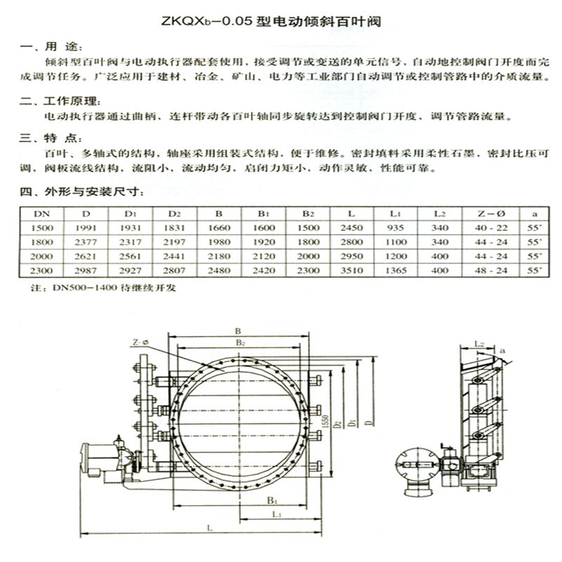 四,百叶式电动气流调节蝶阀D9Z41bw-0.05JC百叶阀设计新颖、结构合理、重量轻、