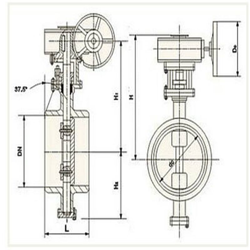 Dt(d)363H(W)-(C.I.P.R)对焊式硬密封蝶阀系列外形尺寸
