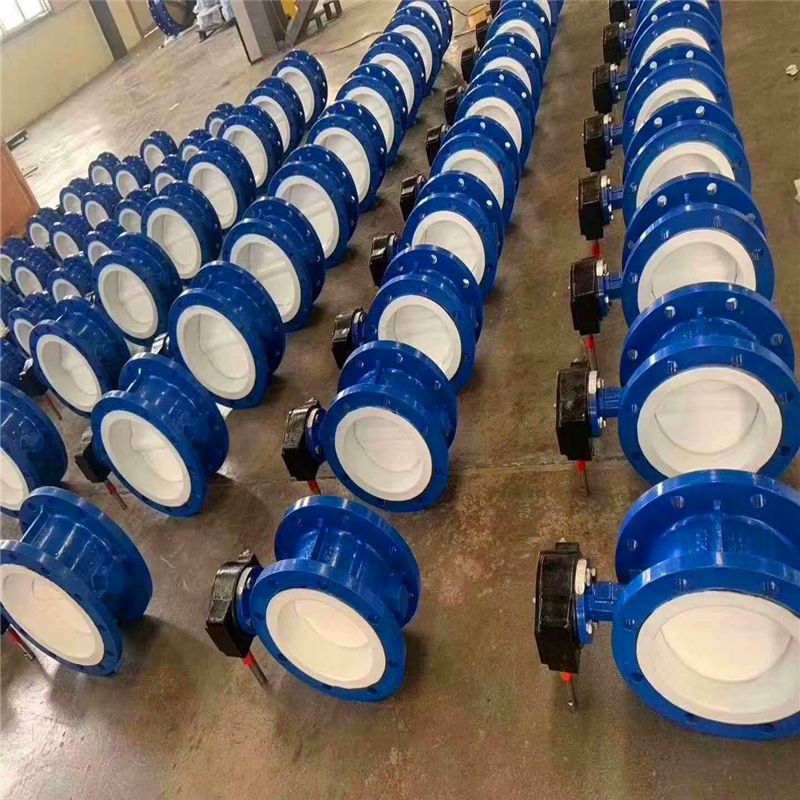 蝶阀是用阀杆一起转动的蝶板作启闭件,用以实现阀门的开启,关闭与调节。衬里蝶阀是在过流部件、阀体、蝶板、阀杆上采用衬里技术衬里较厚的高分子材料,防腐蚀性能优良,可适用于任何浓度的酸、碱、盐及氧化剂、还原剂、有机溶剂等介质,是化工、石油、医药、食品、钢铁冶炼、造纸、水电等系统的气体、液体、半流体的管路和容器上作截流和调节设备使用的理想产品,并可取代闸阀、截止阀和其它类型的切断、调节阀门。用途:本厂生产的全衬聚四氟乙烯(F4)、聚三氟氯乙烯(F3)和聚全氟乙丙烯(F46)氟塑料衬里阀,具有耐腐蚀、无泄漏、寿命长等优点。 适用于浓硫酸、盐酸、硝酸、氢氟酸、王水、各种有机酸、强酸、氧化性介质或高温烯硫酸、高温浓醋酸、酸碱交替及多种有机溶剂和其它强腐蚀性介质。同类产品还有电动软密封蝶阀。