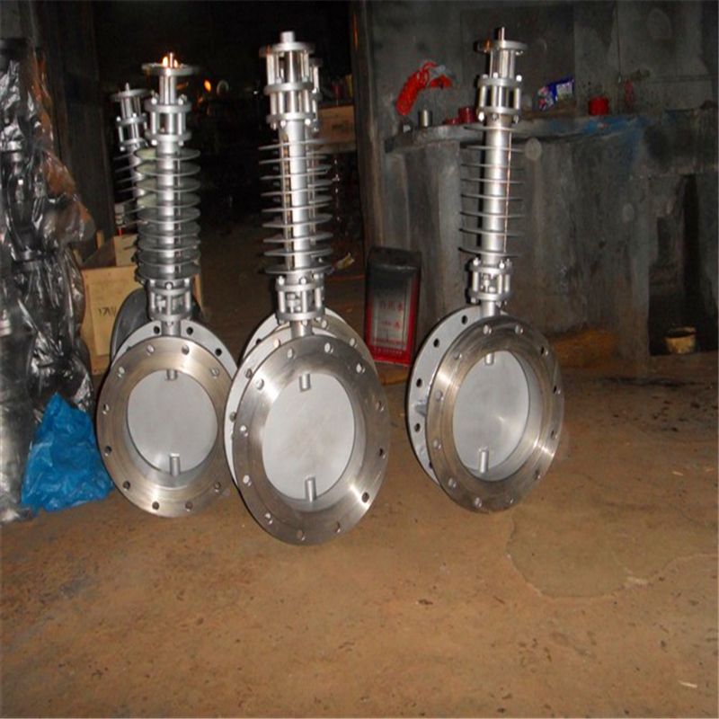 DS9113电动水冷式超高温烟道蝶阀由于选择了合适耐高温材料和独特的结构形式,在低压差的场合下,*高使用温度可达到900℃。取代了传统的内循环水冷结构和衬耐火泥的落后结构;该系列电动调节超高温蝶阀具有结构简单,操作方便、口径大、重量轻等特点。阀体内设有对开分体阀座结构,保证了泄漏量较小的特性,能广泛使用在硫磺制酸、冶金、石化系统中的高炉配风、锅炉管道的场合,对流体作调节控制使用;可以选择蜗轮传动传动机构,满足工艺控制的需求。该阀中的阀体采用优质碳钢和不锈钢内腔通水冷却,阀板采用双层优质耐热钢,内腔和轴通水冷却,并在阀出口处设有流量开关报警功能,同时在进出口设有二个流量调节阀。具有耗水量少、耐温高、体积小、转动灵活、使用寿命长、操作维护方便等优点。高温烟道蝶阀是炉膛压力调节装置。在阀体内设有带子口的保温内衬,阀板可以和保温内衬的子口贴紧,密封严;阀杆轴承与高温烟气之间有保温内衬隔绝,阀体和轴承的温度较低,寿命长;装配有轴承的阀杆带动阀板转动,阀板旋转灵活。选用优质耐火材料生产的保温内衬和优质耐热钢生产的阀杆、阀板,可以在1 100℃的高温烟气下长期使用。配以电动执行器可以自动调节炉压一种新型高温蝶阀的结构设计特点和工作原理,论述了其在高温工况下使用的性能。