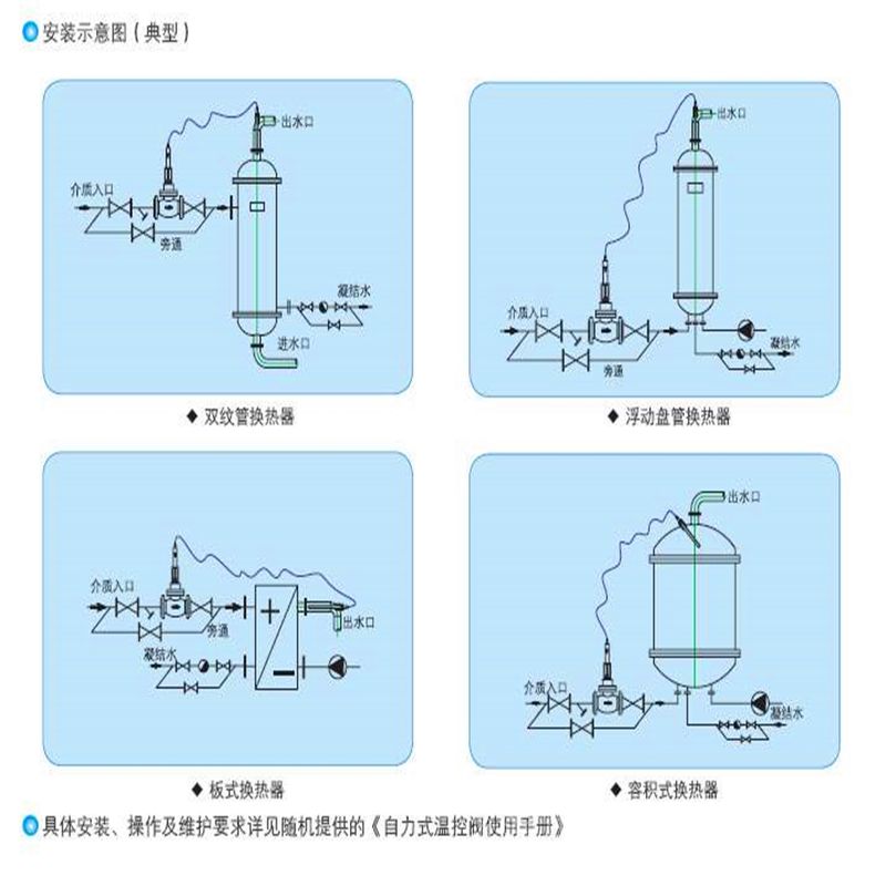 (1)阀体应尽量安装于便于调节和保养操作的位置,顺热媒流向,切勿装反。