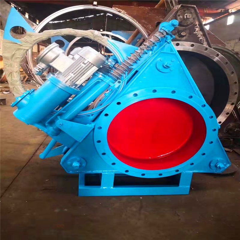 液动扇形盲板阀又名液动扇形眼镜阀,液动翻板阀,主要由左阀体、右阀体、丝杆、闸板、密封圈、杠杆、液压油缸等零件组成,并由底座、支撑柱构成一个刚性结构体。阀门中设有夹紧、松开汽缸和翻板汽缸,夹紧、松开汽缸通过杠杆和丝杆螺旋驱动左、右阀体完成松开、夹紧动作,翻板汽缸驱动闸板完成开关动作。橡胶密封圈镶钳在闸板上,具有耐高温、密封性能好、更换方便、使用寿命长等特点。液动盲板阀可以单台远距离控制,亦可多台联网远距离控制,非正常情况下还可以利用阀门本身装置手动操作。