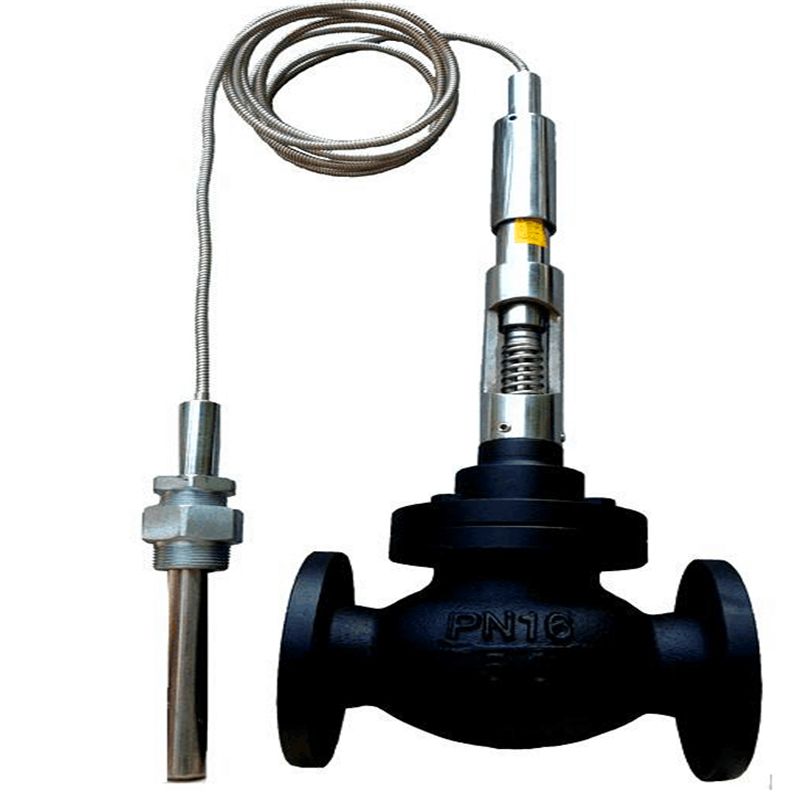 又称温控阀、自力式温度控制阀、温度调节阀、温度控制阀。由控制阀门和温控器组成。按用途分为加热型和冷却型。自力式温度调节阀主要由控制阀及温控器组成,是一种无需外来能源而依靠被控介质自身的温度变化进行自动调节的节能产品。适用于非腐蚀性的液体、气体和蒸汽,在各种冷却系统中的温度控制。当被控介质温度升高,控制阀门关闭(加热型);当被控介质温度升高,控制阀门开启(冷却型)。广泛应用于化工、石油、电力、冶金、食品、轻纺、民民建筑楼群、宾馆、饭店等各种供热、供水、制冷、杀菌消毒等设备的温度自动调节。
