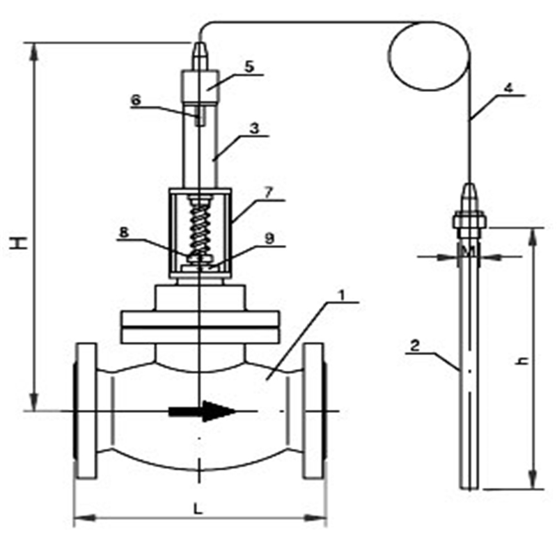 2.本调节器不能用作截止阀。当系统停止供热时,必须关闭热源截止阀。