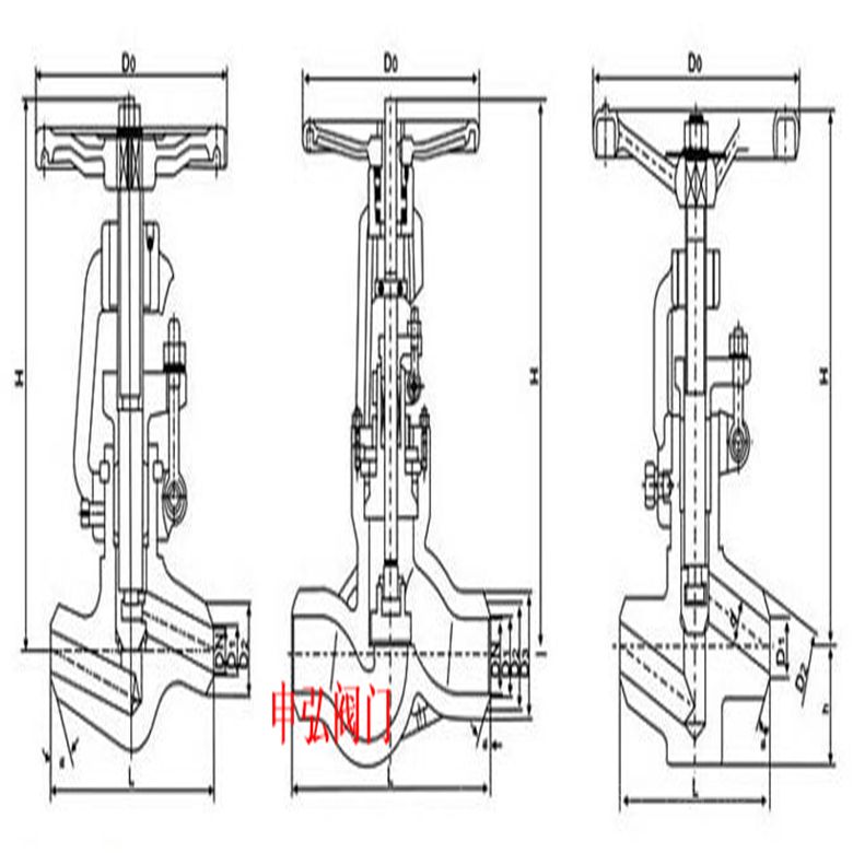 J61Y-P55/100V电站高温高压焊接式截止阀主要外形尺寸