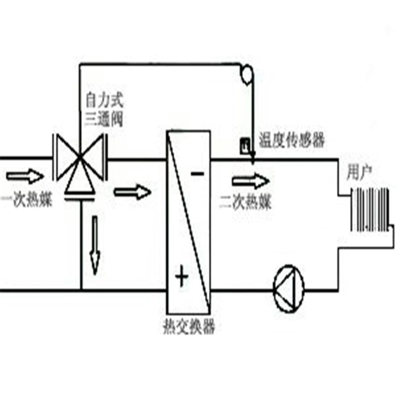 本发明涉及一种供暖系统。实用新型内容本实用新型所要解决的技术问题是提供一种可根据回水温度自动调节每个区域系统流量,以满足大型采暖系统每个区域的流量平衡,使每个采暖区域供水温度相同的采暖专用的自力式温控阀。ZZW自力式三通温度调节阀利用液体受热膨胀及液体不可压缩的原理实现自动调节。温度传感器内的液体膨胀是均匀的。其控制作用为比例调节被控介质温度变化时,传感器内的感温液体体积随着膨胀或收缩。被控介质温度高于设定值时,感温液体膨胀。推动阀芯向下关闭自力式三通温度调节阀,减少热媒的流量;被控介质的温度低于设定值时,感温液体收缩.复位弹簧推动阀芯开启,增加热媒的流量。自力式温度调节阀主要适用于采暖空调生活热水、石油化工、电力、机电纺织、橡胶、食品等行业。