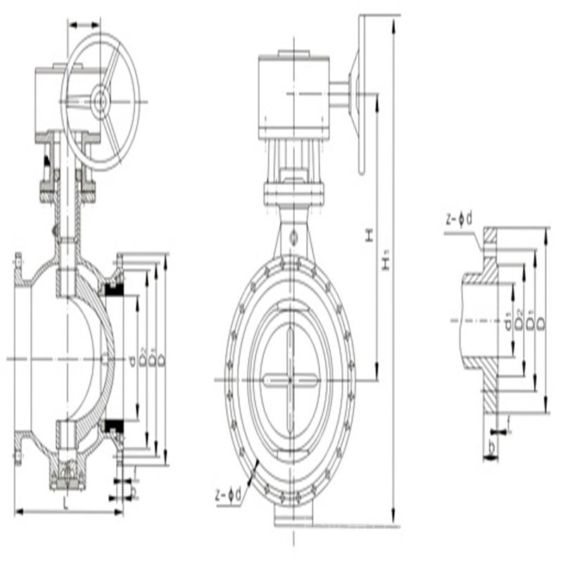 PBQ340F超大口径偏心半球阀外形尺寸压力等级 公称压力PN(MPa) 0.25 0.6 1.0 1.6 2.5 4.0 6.4 10.0 壳体试验压力 0.38 0.9 1.5 2.4 3.8 6.0 9.6 15.0 密封试验压力 高压液体密封试验 0.28 0.66 1.1 1.8 2.8 4.4 7.04 11.0 低压气体密封试验 0.6 0.6 0.6 0.6 0.6 0.6 0.6 0.6 适用工况 适用介质 见“各行业适用范围” 适用温度 ≤425℃ 驱动方式 手动(3)、电动(9)、气动(6)等 公称通径 DN40~1000mm 适用规范 设计制造 GB12237-89 结构长度 GB12221-89 法兰尺寸 GB9113-2000、也可按用户要求的API 6D-94 检验试验 JB/T9092-99、GB/T13927-92 公称压力 公称通径 DN 尺寸[mm] L D D1 D2 b Z-Φd Ws Hs Hw Hd PN1.6MPa 80 190 200 160 132 20 8-Φ18 235 335 390 100 229 215 180 155 20 8-Φ18 320 235 335 390 125 254 245 210 185 22 8-Φ18 400 260 355 405 150 267 280 240 210 24 8-Φ18 500 280 375 440 200 292 335 295 265 24 8-Φ23 800 320 410 470 250 330 390 350 320 26 12-Φ23 1000 355 485 550 300 356 440 400 368 26 12-Φ23 1200 400 530 595 350 430 500 460 428 28 16-Φ23 580 650 400 530 565 515 482 28 16-Φ25 650 730 450 580 615 565 532 30 20-Φ25 710 790 500 660 670 620 585 30 20-Φ25 760 840 600 840 780 725 685 34 20-Φ30 870 960 700 900 895 840 800 38 24-Φ30 910 1080 800 1000 1010 950 905 42 24-Φ34 935 1125 公称压力 80 190 200 160 132 20 8-Φ18 235 335 390 100 229 220 180 155 20 8-Φ18 320 235 335 390 PN2.5MPa 125 254 250 210 185 22 8-Φ18 400 260 355 405 150 267 285 240 210 24 8-Φ23 500 280 375 440 200 292 340 295 265 26 12-Φ23 800 320 410 470 250 330 405 355 320 30 12-Φ25 1000 355 485 550 300 356 460 410 375 30 12-Φ25 1200 400 530 595 350 430 520 470 435 34 16-Φ25 580 650 400 530 580 525 485 36 16-Φ30 650 730 450 580 640 585 545 40 20-Φ30 710 790 500 660 715 650 608 44 20-Φ34 760 840 600 840 840 770 718 48 20-Φ41 870 960 700 900 910 840 788 50 24-Φ41 910 1080 800 1000 1025 950 898 52 24-Φ41 935 1125
