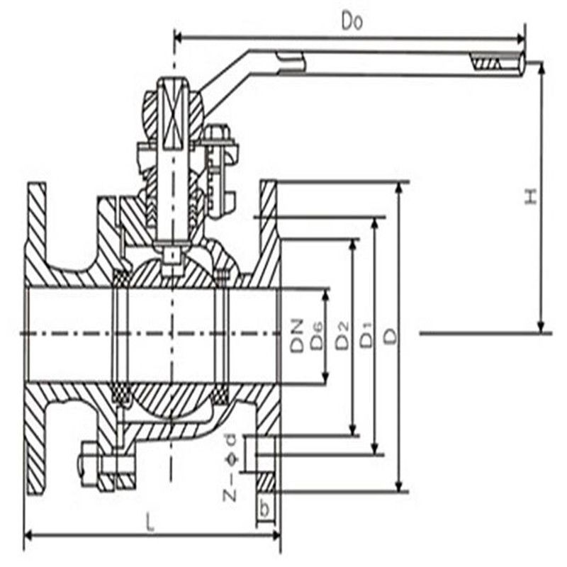 Q41T法兰式铜球阀主要外形尺寸阀体