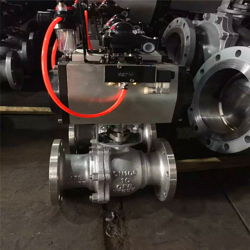 气动球阀适用介质:水、气、油品、天然气和酸碱腐蚀性介质。