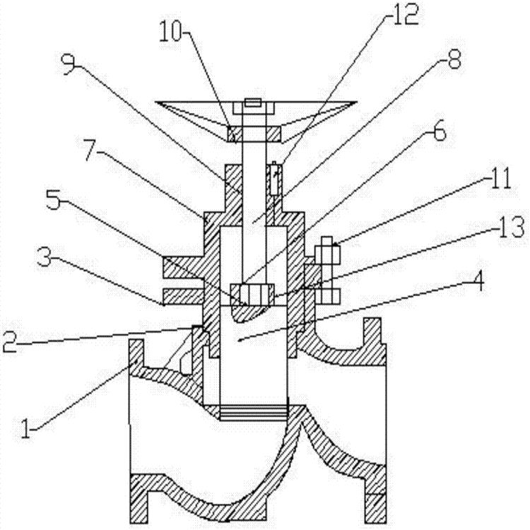 1、本实用新型活动阀芯为空心结构,大幅度减轻了阀芯的重量,当阀门关闭时,气缸只需要克服介质施加在活动阀芯环形截面上的阻力,因此气缸的缸径可以大幅度减小,
