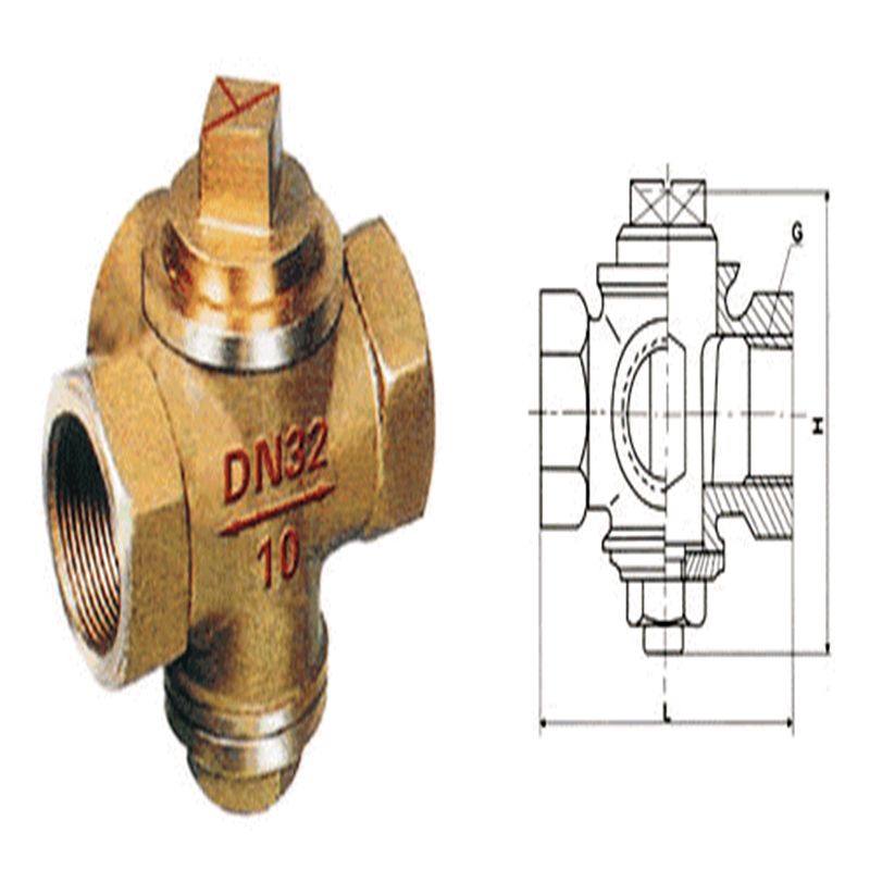 三通内螺纹铜旋塞阀是柱塞形的旋转阀,启闭件是一个有孔的圆柱体,绕垂直于通道的轴线旋转,起到切断和接通介质以及分流介质的作用,通过旋转90度使阀塞上的通道口与阀体上的通道口相同或分开,实现开启或关闭的一种阀门。
