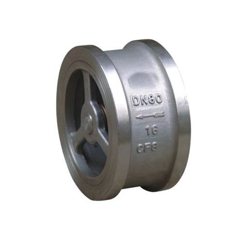 现有技术中,输送蒸汽和空气介质的设备或管路上一般设置阀门,通过阀门的开启和关闭控制气体介质输送的通断。在一些特殊工程需求中,需要防止管路系统中的介质倒流,因此需要设置一种工作安全可靠的止回阀。 H71H对夹升降式止回阀阀瓣沿着中心定位作升降运动,由于阀瓣的关闭行程短,并有弹簧加载,关闭速度快,可显著减少水锤现象。产品具有体积小、重量轻、动作灵敏、密封可靠、安装方便等特点,特别适合于安装空间受限制的场合采用。