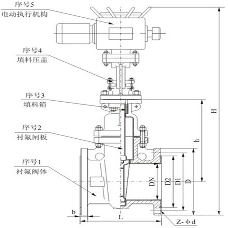 1 阀体 灰铸铁、铸钢 2 闸板 碳钢+合金钢、灰铸铁、灰铸铁+黄铜 3 阀杆 碳钢、不锈钢、黄铜 4 垫片 四氟垫片、金属石墨垫片 5 大阀盖 灰铸铁、铸钢 6 小阀盖 灰铸铁、铸钢 7 填料 句四氟乙烯、柔性石墨、浸油石棉盘根 8 支架 灰铸铁、铸钢 9 电动执行器 壳体(HT200、WCB)
