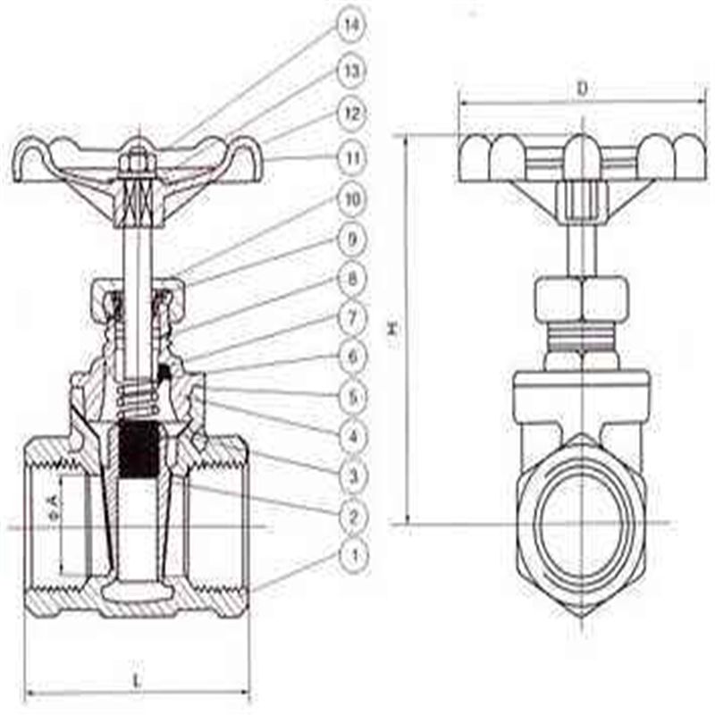 Z15T丝扣式黄铜闸阀主要连接尺寸: