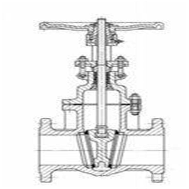 一种法兰闸阀,由阀体、闸板、法兰、阀盖、阀杆构成,其特点是阀体内左右两侧分别装有阀座,阀座内安装有楔式闸板,阀体两端与管道连接口处装配有法兰,利用法兰与管道装置进行连接。它解决了目前社会上设计生产的闸阀,其与管道的连接方式普遍采用焊接连接,长期使用后不便于拆卸、维修与更换的问题,可广泛适用于液体、气体的管道装置流量控制领域。国标法兰闸阀具有流体阻力小,适用的压力、温度范围大等特点,是一种*常用的截断阀,用于截断或接通管路中的介质。