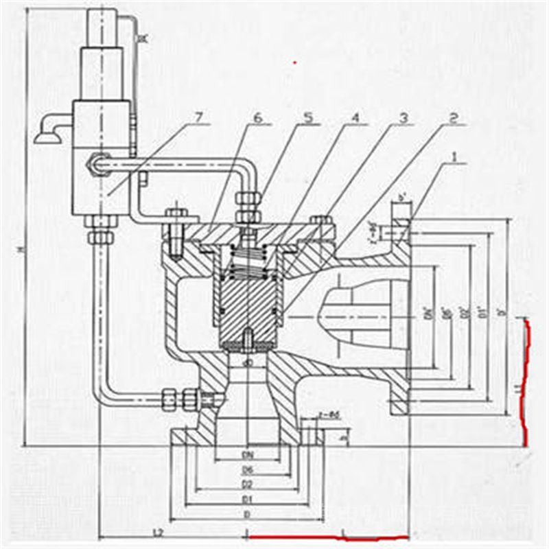 NO. 零件名称 AF46Y/F 材料 A46F/Y材料 1 阀体 WCB WCB 2 阀瓣 2Cr13/2Cr13+PTFE 1Cr18Ni9Ti/1Cr18Ni9Ti+PTFE 3 导向套 1Cr18Ni9Ti 1Cr18Ni9Ti 4 弹簧 50CrVA 50CrVA 5 O型圈 氟橡胶 氟橡胶 6 阀盖 25 25 7 导阀 部件 型号 公称通径 do L L1 L2 H DN D D1 D2 D6 b Z-ød D D1 D2 D6 b Z-ød A46 F/Y -16 25 15 110 95 150 365 32 115 85 65 16 4-14 140 100 78 18 4-18 32 20 115 100 150 375 40 140 100 78 18 4-18 150 110 85 18 4-18 40 25 120 110 160 390 50 150 110 85 18 4-18 165 125 100 20 4-18 50 32 135 120 160 410 65 165 125 100 20 4-18 185 145 120 20 4-18 65 40 160 140 175 435 80 185 145 120 20 4-18 200 160 135 20 8-18 80 50 170 135 175 451 100 200 160 135 20 8-18 220 180 155 22 8-18 100 65 195 175 195 500 125 220 180 155 22 8-18 250 210 185 24 8-18 125 80 210 190 220 526 150 250 210 185 22 8-18 285 240 210 24 8-23 150 100 255 230 265 623 175 285 240 210 24 8-23 315 270 240 26 8-23 200 125 300 260 300 690 250 340 295 265 26 12-23 405 355 320 30 12-26 A46 F/Y -25 25 15 110 95 150 365 32 115 85 65 16 4-14 140 100 78 18 4-18 32 20 115 100 150 375 40 140 100 78 18 4-18 150 110 85 18 4-18 40 25 120 110 160 390 50 150 110 85 18 4-18 165 125 100 20 4-18 50 32 135 120 160 410 65 165 125 100 20 4-18 185 145 120 20 4-18 65 40 160 140 175 435 80 185 145 120 22 8-18 200 160 135 20 8-18 80 50 170 135 175 451 100 200 160 135 22 8-18 220 180 155 22 8-18 100 65 195 175 195 500 125 230 190 160 24 8-23 250 210 185 22 8-18 125 80 210 190 220 526 150 270 220 188 28 8-26 285 240 210 24 8-23 150 100 255 230 265 623 175 300 250 218 30 8-26 310 270 240 26 8-23 200 125 300 260 300 690 250 360 310 278 34 12-26 405 355 320 30 12-26 A46 F/Y -40 25 15 110 95 150 365 32 115 85 65 58 16 4-14 140 100 78 18 4-18 32 20 115 100 150 375 40 140 100 78 66 18 4-18 150 110 85 18 4-18 40 25 120 110 160 390 50 150 110 85 76 18 4-18 165 125 100 20 4-18 50 32 135 120 160 410 65 165 125 100 88 20 4-18 185 145 120 20 4-18 65 40 160 140 175 435 80 185 145 120 110 22 8-18 200 160 135 20 8-18 80 50 170 135 175 451 100 200 160 135 121 22 8-18 220 180 155 22 8-18 100 65 195 175 195 500 125 235 190 160 150 24 8-23 250 210 185 22 8-18 125 80 210 190 220 526 150 270 220 188 176 28 8-26 285 240 210 24 8-23 150 100 255 230 265 623 175 300 250 218 204 30 8-26 310 270 240 26 8-23 200 125 300 260 300 690 250 375 320 282 260 38 12-30 405 355 320 30 12-26