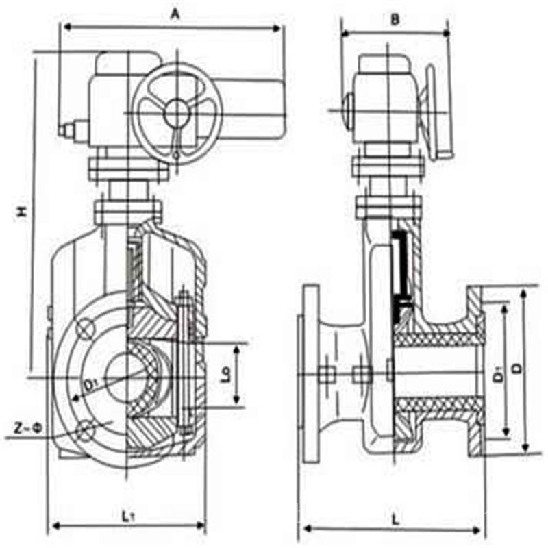 通电后,电动执行器带动阀杆工作,使大小阀杆同时带动上下闸板,压缩管套,进行关闭,反转即行开启,这样,闸板在导柱之间上下往复完成阀门开闭工作。另外,因橡胶管套承力,因此在开关时,操作人员旋转手轮时只要感到适量抵触,均己达到开闭点,切勿尽力或多人辅助,禁用其他工具开闭。