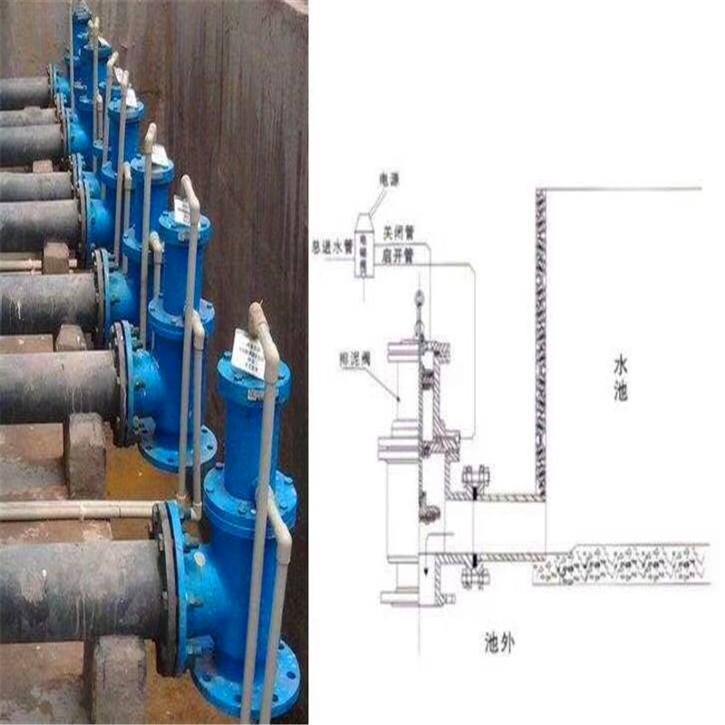 1、增设排泥阀装置增设排泥阀装置的目的是:缩短停池放水时间,增大排污泥和排水量,使每次停池清疏积泥工作更为快捷**。闸门座是带有一条半圆形缝隙的钢管套,其内径为排泥泉之和。排泥阀闸门座与穿孔排泥管之间采用影胀水泥接囗。门座的作用是固定闸门板,并将闸门板安装于穿孔排泥管之上。闸门板是圆形钢板外包橡胶板,为减小开启所需空间,采用吊环手拉式,H742X隔膜式池底排泥阀,沿门板槽上下开启。对排泥阀的要求是:沉淀池正常运作时闸板严密,停池清疏时开启方便迅速,制作安装简单。 2、改进原普通低压排泥阀若将原水厂排泥阀由手动的音通低压闸阀改造为手动蝶阀或电动蝶阀。本实用新型公开了一种液压快开排泥阀,包括阀体、下阀盖以及上阀盖,上阀盖与下阀盖之间设有膜片,膜片与上阀盖之间形成上腔室、膜片与下阀盖之间形成下腔室,下阀盖上分别设有连通下腔室的进水口与出水口,阀体内设有流道,膜片上固设有穿设进流道的阀杆,阀杆位于流道内的一端固设有阀瓣,上阀盖上设有连通上腔室的排气孔,上腔室内设有压缩弹簧,排气孔自由端的端面上设有封盖,封盖上固设有延伸进排气孔的安装部,安装部内设有连通排气孔的空腔,安装部的外侧壁设有连通空腔的*通孔,*通孔围绕于排气孔的圆心周向分布设置。本实用新型具有以下优点和效果:本实用新型能延长排泥阀使用寿命的同时,能达到更好的密封以及截流作用。