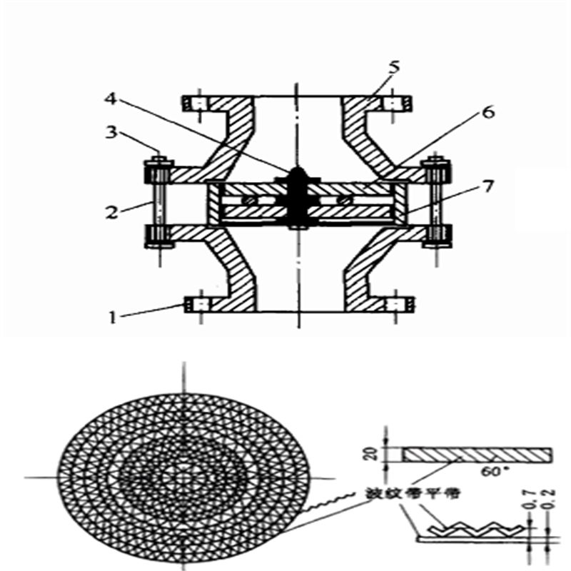金属网型滤芯用直径0.23~0.315mm的不锈钢,多层重叠组成。目前国内的阻火器通常采用16~22目金属网,为4~12层。波纹型滤芯用不锈钢、铜镍合金、铝或铝合金支撑。波纹阻火器能阻止爆燃的猛烈火焰,并能承受相应的机械和热力作用,流动阻力小,易于清洗和更换。
