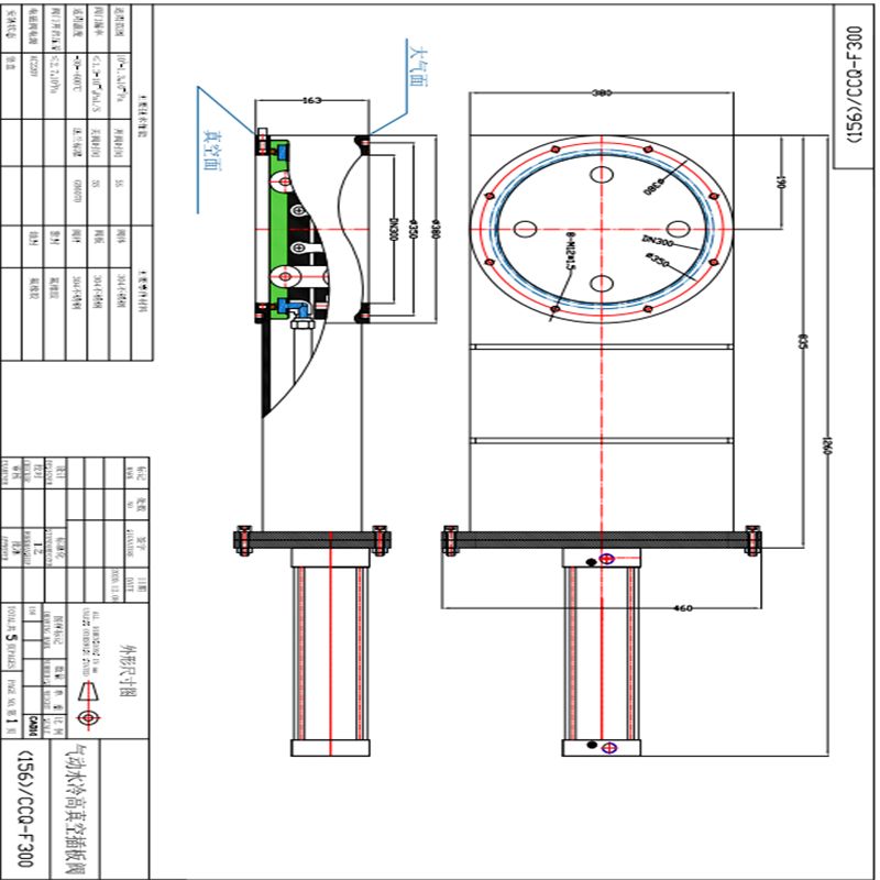 CCQ气动超高真空插板阀外形及连接尺寸