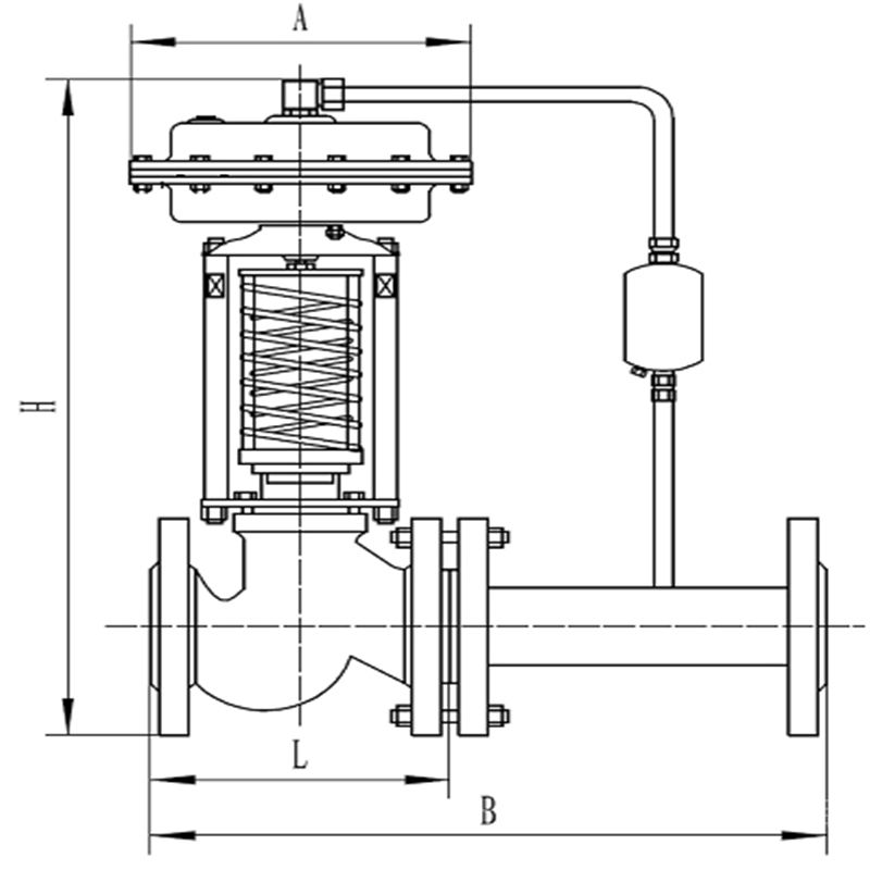 (5) 介质流动方向与阀体上箭头指向一致,前后管道中心应对准调压阀两法兰中心,避免阀体受过大的应力。