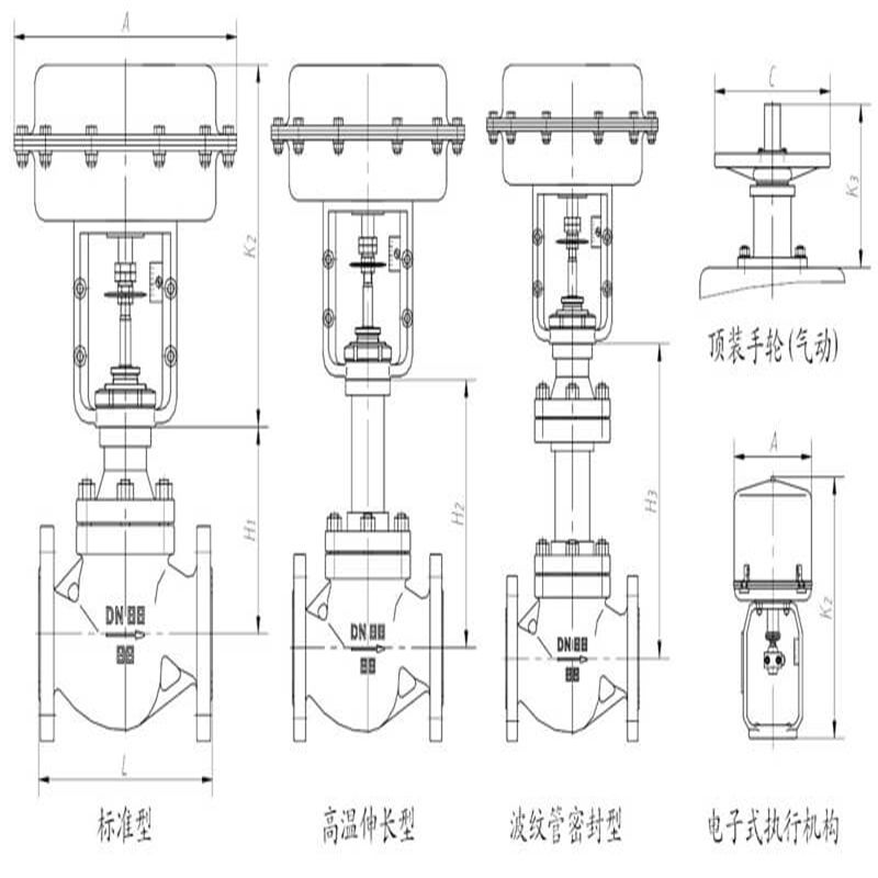 (1) 采用轻型执行机构,高度及重量均可减小30%。