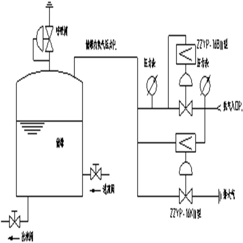 本实用新型采用动力源与信号点分开检测的方法,外加可调节流装置,使整台阀门的调节精度大大提高,减压比*大可达2000:1。特别适合作为氮封的供氮阀使用,具有持续供氮压力波动小,反应灵敏等特点。由控制阀门、执行器、压力弹簧、指挥器、脉冲管等部件组成。自力式氮封阀主要用于保持容器顶部保护气体(一般为氮气)的压力恒定,以避免容器内物料与空气直接接触,防止物料挥发、被氧化,以及容器的安全。该阀压力设定在指挥器上实现,方便、快捷,压力设定值在运行中也可随意调整;控制精度高,可比一般zzy型直接操作自力式压力调节阀高一倍,适合于控制精度要求高的场合。特别适用于各类大型储罐的气封保护系统。该产品具有节能、动作灵敏、运行可靠、操作与维修方便等特点。广泛应用于石油、化工、冶金、电力、轻纺等工业部门中用作生产过程的自动调节。符合国家标准的新一代阀门产品,ZZDQ带指挥器操作型自力式压力调节阀其特点有:
