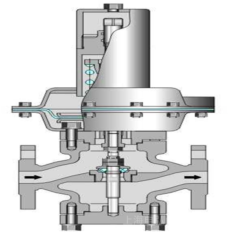 ZZVN内反馈自力式微压调节阀产品特点 ·无需停止生产即可进行设定值的调整; ·无填料,阀杆上、下活动时不存在磨擦,上密封绝对可靠; ·执行机构敏感元件极为灵敏,极微小的压力变化会被感测出来; 背景技术: 近年来,国内阀门行业 飞速发展,各阀门厂家的产品结构类型层出不穷。但国内现有的自力式微压调节阀采用导压管把阀体内介质引入执行机构膜室,这种外取压结构的缺点是导压管易堵塞,尤其是粘度较大的介质,如油品类介质。另外,采用外取压结构时,必须通过取压接头使导压管一端固定在阀体(或管道)上,另一端固定在执行机构上,增加了介质泄漏点。因此,这种结构的自力式微压调节阀介质易外漏且压力无法精确控制,影响工业生产过程的正常运行。 设定点压力通过导压管传递到执行机构,使执行机构动作并与弹簧建立一个动态平衡,当设定点压力发生了改变时,平衡被破坏,弹簧产生一个力使阀芯移动,从而使设定点压力重新回到设定值。 控制方式 微压型(ZZV型):应用于微压场合控制设定点的压力恒定,设定点*小压力可达30mmH2O。 压力型(ZZV-C型):控制两点差压恒定的调节阀,常用于控制两种物料配比或两点保持一个恒定的差压。 ZZVN内反馈自力式微压调节阀特点 l自力式微压调节阀无需外加能源,能在无电无气的场合工作,记方便又节约了能源; l执行机构配用超薄膜片外加敏感弹簧设计,整机具有极高的灵敏度,设定压力可达30mmH2O; l膜片式压力补偿设计,完全消除压力波动对调节精度的影响,使设定点压力更加稳定; l整机采用无填料设计,阻力小; l压力分段范围细且相互交错,选用方便; l压力设定方便,运行时可连续无干扰地进行设定,免维护使用; ZZVN内反馈自力式微压调节阀实用新型内容