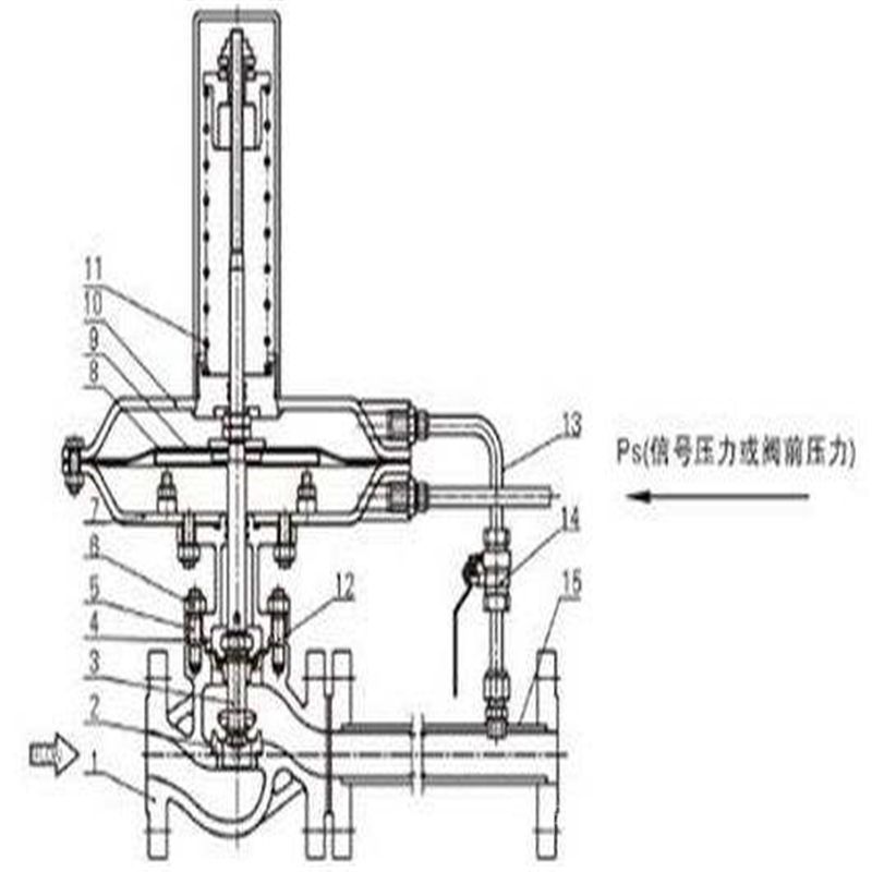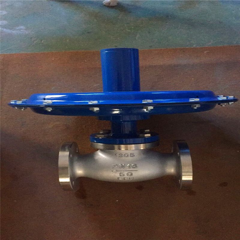 设定点压力通过导压管传递到执行机构,使执行机构动作并与弹簧建立一个动态平衡,当设定点压力发生了改变时,平衡被破坏,弹簧产生一个力使阀芯移动,从而使设定点压力重新回到设定值。是一种依靠被调介质自身的压力变化进行自动调节或维持压力差为恒定值的一种节能型调节阀。它可应用于工业燃烧炉系统,控制两种物料,如煤气、空气的流量配比,以达到理想燃烧效果;用于氢冷发电机组密封油系统,控制密封油与氢气间压力差,确保可靠密封。其特点是设备运行中可进行设定值调整;无填料,动作灵敏;能检测出微小的压力变化。广泛应用于工业生产微、差压压力的自动控制中。