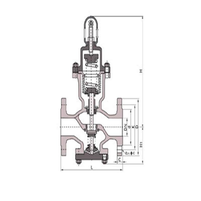 本阀是由阀体、阀盖、阀瓣、阀体密封圈、阀杆、波纹管、调节弹簧等零件组成,体腔组装有阀瓣、阀体密封圈和辅弹簧,辅弹簧是保持阀瓣和阀体密封圈自动的密封,出口体腔组装弹性密封元件(波纹管)即阀后介质压力的泄漏和克服压力不均匀度的补偿。螺钉是调整弹簧负荷压力。
