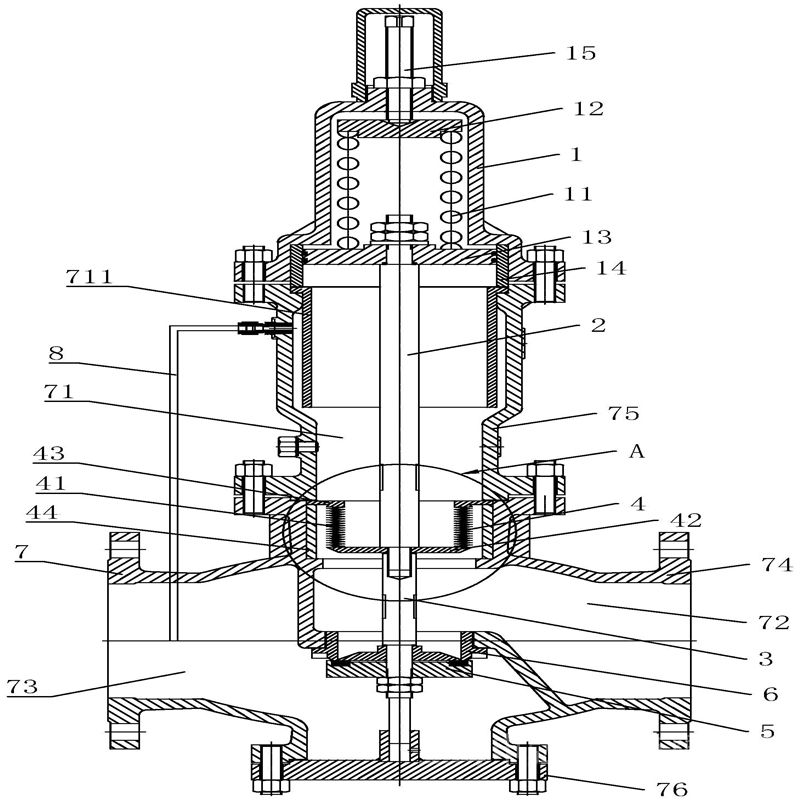 本实用新型具有阀杆轴向运动自由的特性,具有理想的工作性能,灵敏度高,使用寿命长,阀后压力稳定。