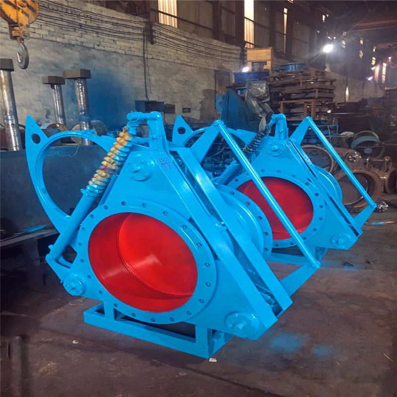 液动扇形盲板阀又名液动扇形眼镜阀,液动翻板阀,主要由左阀体、右阀体、丝杆、闸板、密封圈、杠杆、液压油缸等零件组成,并由底座、支撑柱构成一个刚性结构体。阀门中设有夹紧、松开汽缸和翻板汽缸,夹紧、松开汽缸通过杠杆和丝杆螺旋驱动左、右阀体完成松开、夹紧动作,翻板汽缸驱动闸板完成开关动作。橡胶密封圈镶钳在闸板上,具有耐高温、密封性能好、更换方便、使用寿命长等特点。