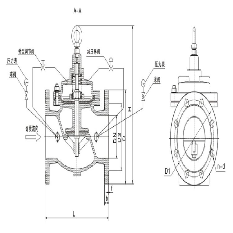调节导阀弹簧即可设定出口压力。本产品利用导阀自力控制,不需要其它装置和能源,保养简便,压力控制准确度高,受进口压力和流量影响小,减压稳压可靠。广泛用于高层建筑、生活区等供水管网系统及城市供水工程。