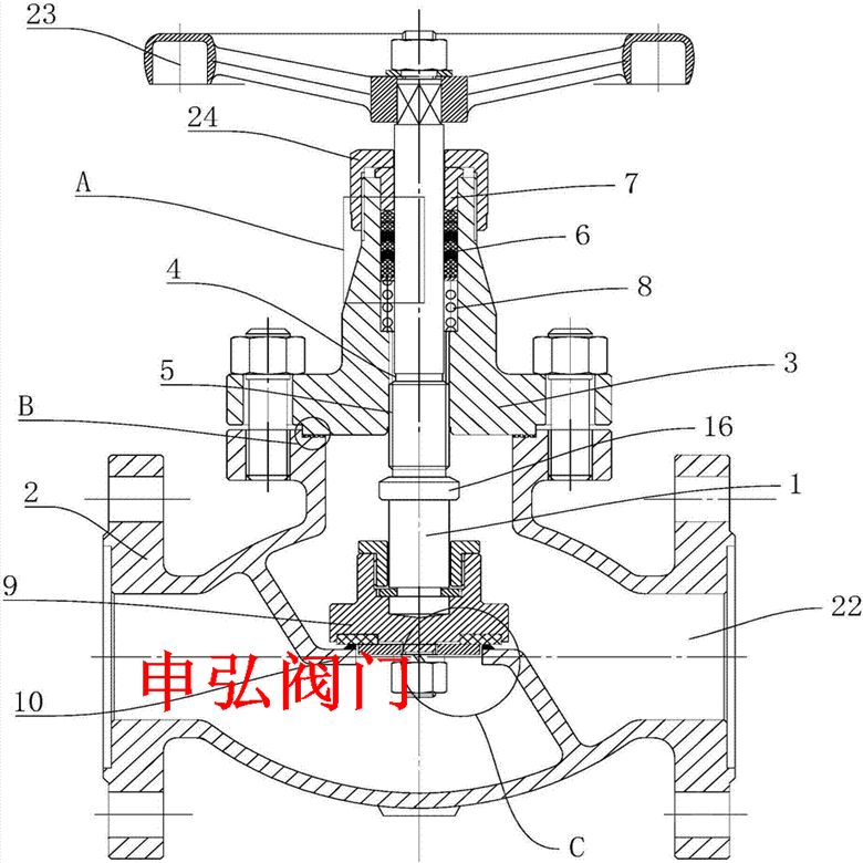 ANSI美标法兰磅级液氨截止阀原理: