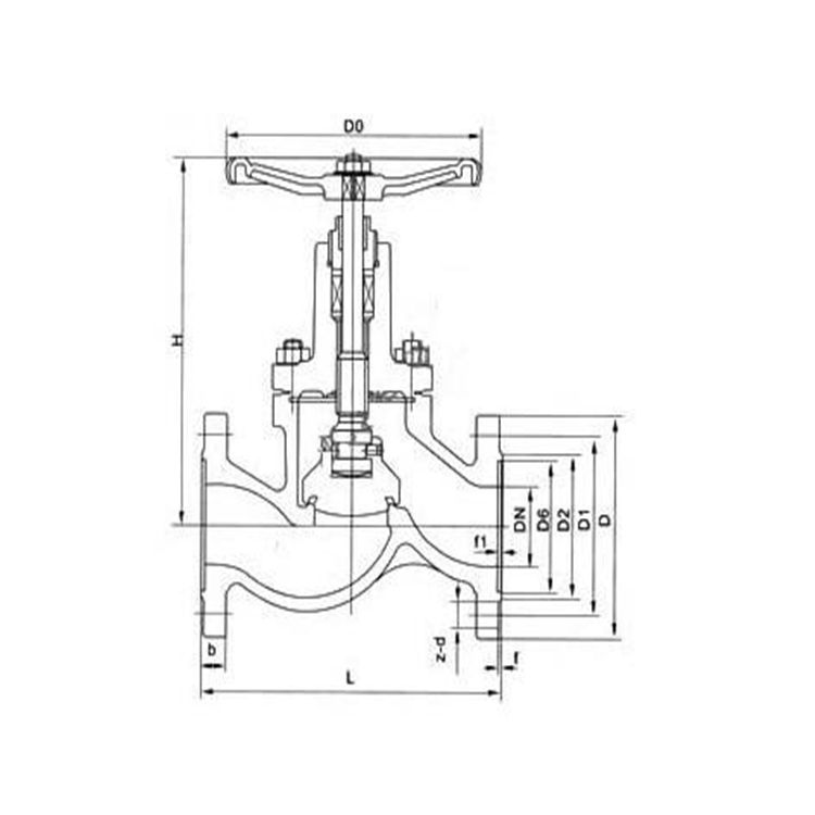 DN(mm)主要外形尺寸及连接尺寸(mm) L D D1 D2 D6 b f f2 z-d H DO J41B-16C J41B-16Q J41B-16K 10 130 90 60 40 35 14 2 4 4-14 196 120 15 130 95 65 45 40 14 2 4 4-14 196 120 20 150 105 75 55 51 16 2 4 4-14 196 140 25 160 115 85 65 58 16 2 4 4-14 204 160 32 180 135 100 78 66 18 2 4 4-18 208 160 40 200 145 110 85 76 18 3 4 4-18 248 200 50 230 160 125 100 88 20 3 4 4-18 248 200 65 290 180 145 125 110 22 3 4 4-18 321 240 80 310 195 160 135 121 24 3 4 8-18 325 240 100 350 215 180 155 150 24 3 4.5 8-18 371 280 125 400 245 210 185 176 26 3 4.5 8-18 400 320 150 480 280 240 210 204 26 3 4.5 8-23 432 320 200 600 335 295 265 260 30 3 4.5 12-23 654 400 250 650 405 335 320 313 32 3 4.5 12-25 745 500 300 700 460 410 375 364 34 3 4.5 12-25 852 600 J41B-25C J41B-25Q J41B-25K 10 130 90 60 40 35 16 2 4 4-14 196 120 15 130 95 65 45 40 16 2 4 4-14 196 120 20 150 105 75 55 51 16 2 4 4-14 196 120 25 160 115 85 65 58 18 2 d 4-14 201 120 32 180 135 100 78 66 18 2 4 4-18 208 120 40 200 145 110 85 76 20 2 d 4-18 248 160 50 230 160 125 100 88 20 3 4 4-18 248 160 65 290 180 145 125 110 22 3 4 8-18 321 240 80 310 195 160 135 121 24 3 4 8-18 325 240 100 350 230 190 160 150 24 3 4.5 8-23 371 280 125 400 270 220 188 176 30 3 4.5 8-25 400 320 150 480 300 250 218 204 30 3 4.5 8-25 432 320 200 600 360 310 278 260 34 3 4.5 12-30 654 400 250 650 425 370 332 313 42 3 4.5 12-34 745 500 300 750 485 430 390 364 46 3 4.5 12-34 852 600 一、WCB碳钢氨水截止阀安装: