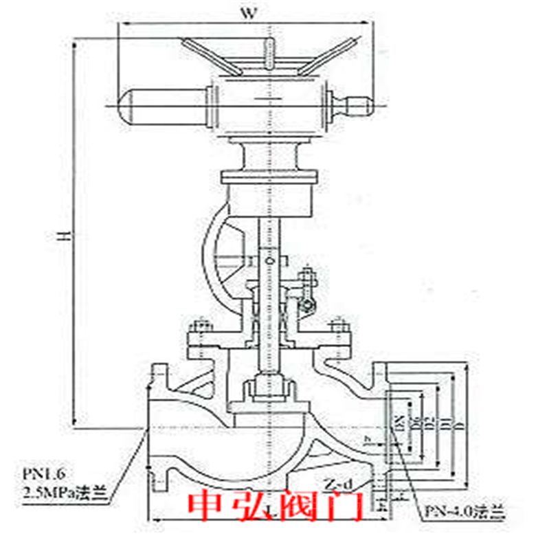 五、DJ941F电动超低温截止阀 PNl.6MPa一4.0MPa 规格主要尺寸: