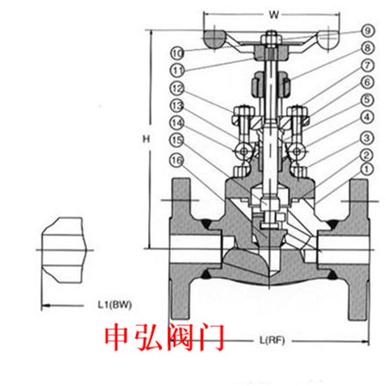3、阀瓣和阀座的密封面采用司太立钴基硬质合金堆焊而成。
