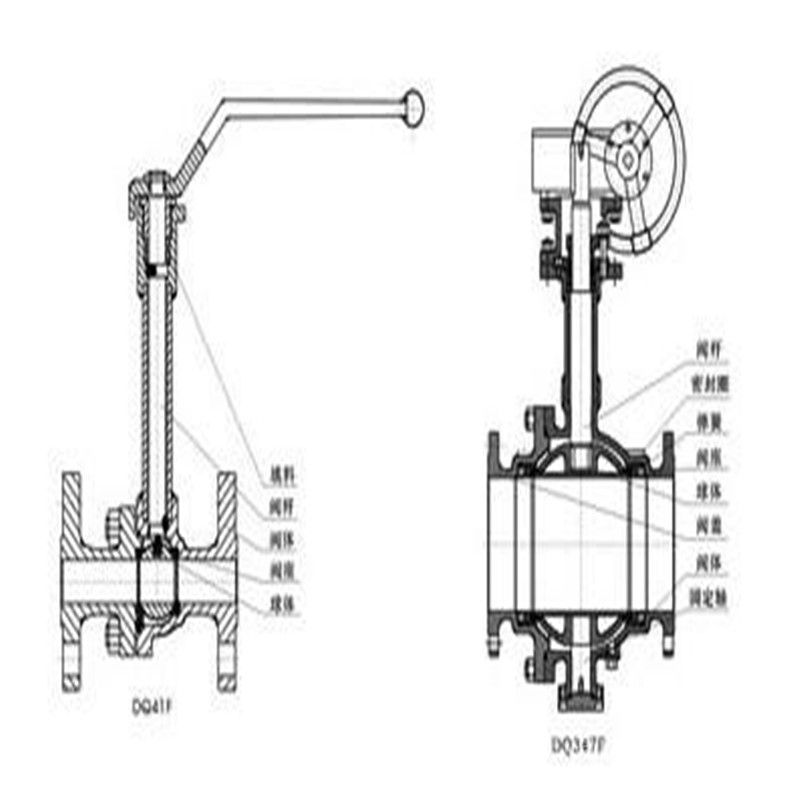 序号 零件名称 AS to ASTM SS to ASTM Type A352 LCB Type A352 LC3 Type F304(L) Type F304(L) 1-2 阀体/阀盖 Type A352 LCB Type A352 LC3 A182 F304(L) A182 F304(L) 3 等长双头螺栓 A193L7+镀镉 A193 3 B8 A193 B8 A193 B8M 4 螺母 A193L7+镀镉 A194 8 A194 8 A194 8M 5,8 密封圈、垫片 RTFE+Cu粉/尼龙1010/PPL 6 球体 A182 F304 A182 F304(L) A182 F304(L) A182 F316(L) 7 阀杆 A182 F304 A182 F304(L) A182 F304(L) A182 F316(L) 9,10 止推片、填料 RTFE+Cu粉/尼龙1010/PPL,碳素纤维 11 压盖 A105N A351 CF8 12 定位片 A182 F321 13 扁螺母 A194 4+镀镉 A194 8 A194 8 A194 8 14 手柄 A193 L7+镀镉 A193 B8 A193 B8 A193 B8 15 圆柱销 Q235A 适用温度 ≥-40°C ≥-101°C ≥-196°C 产品型号 DQ41F-10C-100 DQ41F-10P-100P DQ47F-10C-100 DQ47F-10P-100P 阀体 LCB CF8 球体 304 304 阀杆 304 304 密封圈 PTFE PTFE 填料 PTFE+O形圈 PTFE+O形圈 适用介质 水、油、蒸汽等 酸等腐蚀性介质 适用温度 -50-29℃ -196-29℃ 蜗轮低温球阀 DQ后插入“3”表示,示例:DQ341F-16P 气动低温球阀 DQ后插入“6”表示,示例:DQ647F-16C 电动低温球阀 DQ后插入“9”表示,示例:DQ941F-25P 技术规范: