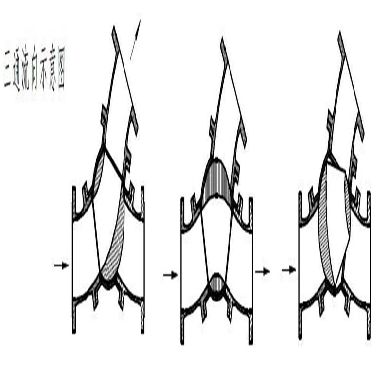Y型三通球阀与阀座密封根据工况不同,可分别采用软密封、喷焊镍基合金(硬度大于HRC60)、超音速涂钨钴合金(硬度大于HRC70)及特种硬化材料等多种先进工艺,适用各种苛刻工况,软密封适用200℃以下工况,硬密封不超过425℃.流向结合:Y型三通球阀有相互成120°和两通孔成135°,根据需要可实现对介质流向切换两种工况。