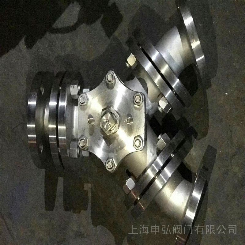 三通球阀有相互成120°或135°的通道,密封面可采用聚四氟乙烯(≤200℃)、对位聚苯(≤300℃)、或硬质合金(≤600℃)等,可满足不同的工况要求。主要用于介质流向的切换,能比相互垂直的两个通道三通球阀流阻更小。本阀结构紧凑,易于操作和维修,适用于水、溶剂、酸和天然气等工作介质等。Y型三通球阀的阀座密封根据工况不同,可分别采用软密封、喷焊镍基合金(硬度大于HRC60)、超音速涂钨钴合金(硬度大于HRC70)及特种硬化材料等多种先进工艺,适用各种苛刻工况,软密封适用200℃以下工况,硬密封碳钢不超过425℃,不锈钢不硬密封不超过350℃。 Y型三通球阀有相互成120°和两通孔成135°,根据需要可实现对介质流向切换两种工况。
