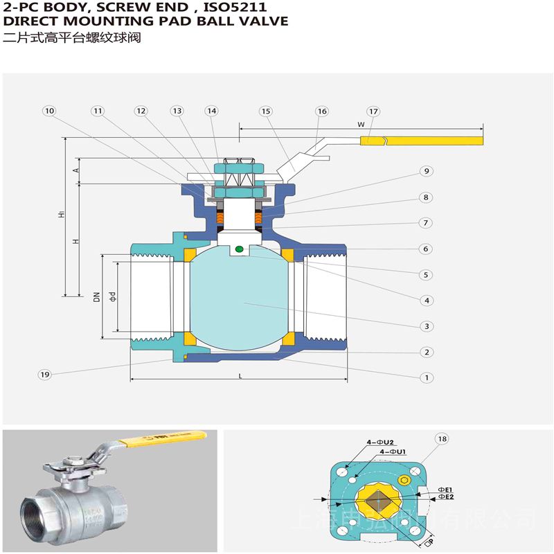 详细信息| 询价留言Q11T黄铜内螺纹球阀产品简介:我公司生产的黄铜内螺纹球阀是二片式全通径的,它的阀体为黄铜锻压(HPb59-1),密封座为增强四氟乙烯、球芯为不锈钢。引进国外先进加工的工艺,结构合理、造型美观。结构设计吸收了国内外先进技术,阀座采用弹性密封结构,密封可靠,启闭轻松。阀杆采用有倒密封的下装式结构,阀腔异常升压时,阀杆不会被冲出。设有耐火结构,万一发生火灾时,仍然能够可靠操作并具有良好的密封性。根据用户需要,可设有防静电结构。设置了90°开关带孔定位片,根据需要可以加锁,防止误操作。