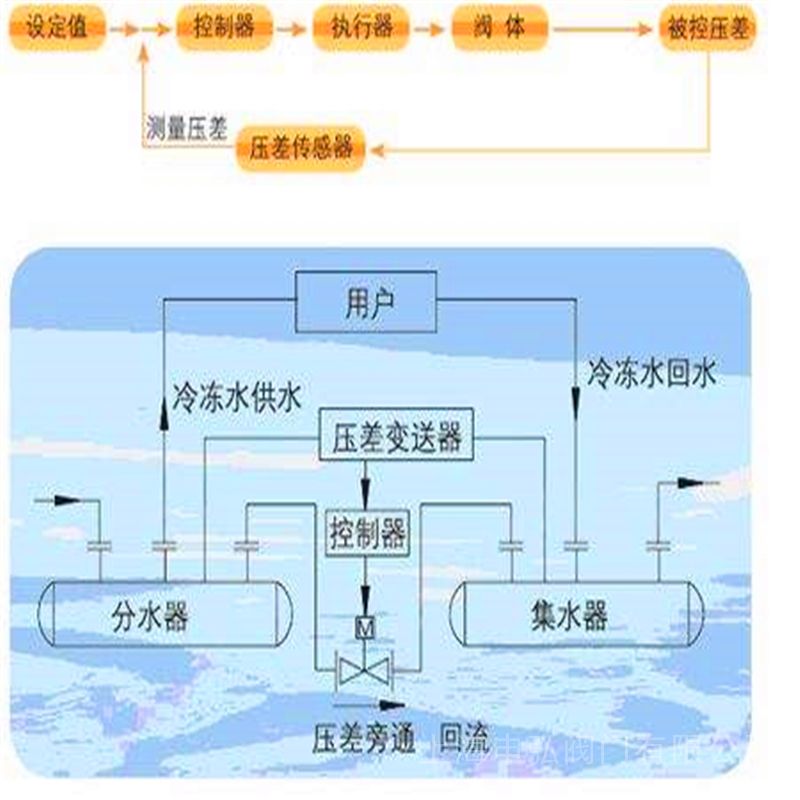 -用于循环系统供回水主干管压差旁通自动控制,是电动调节阀的另一种典型应用。