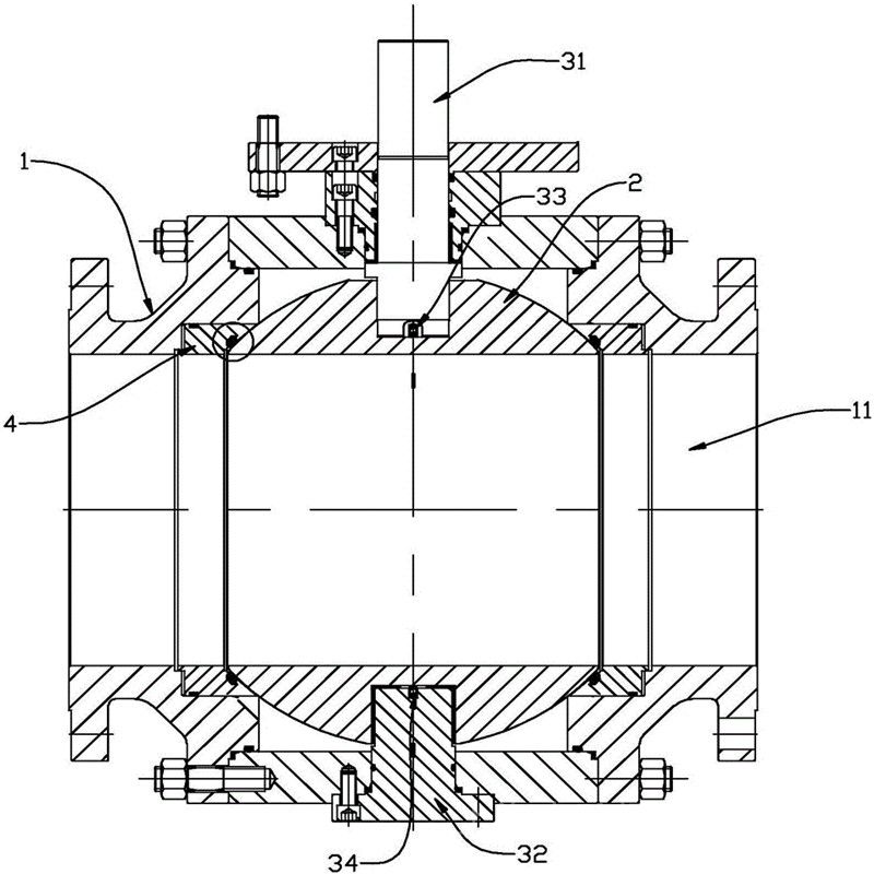 固定球阀处于关闭状态时,上下游侧的阀座使流体阻断,阀体中腔的积滞物可以排出,排出装置具有如下功能: